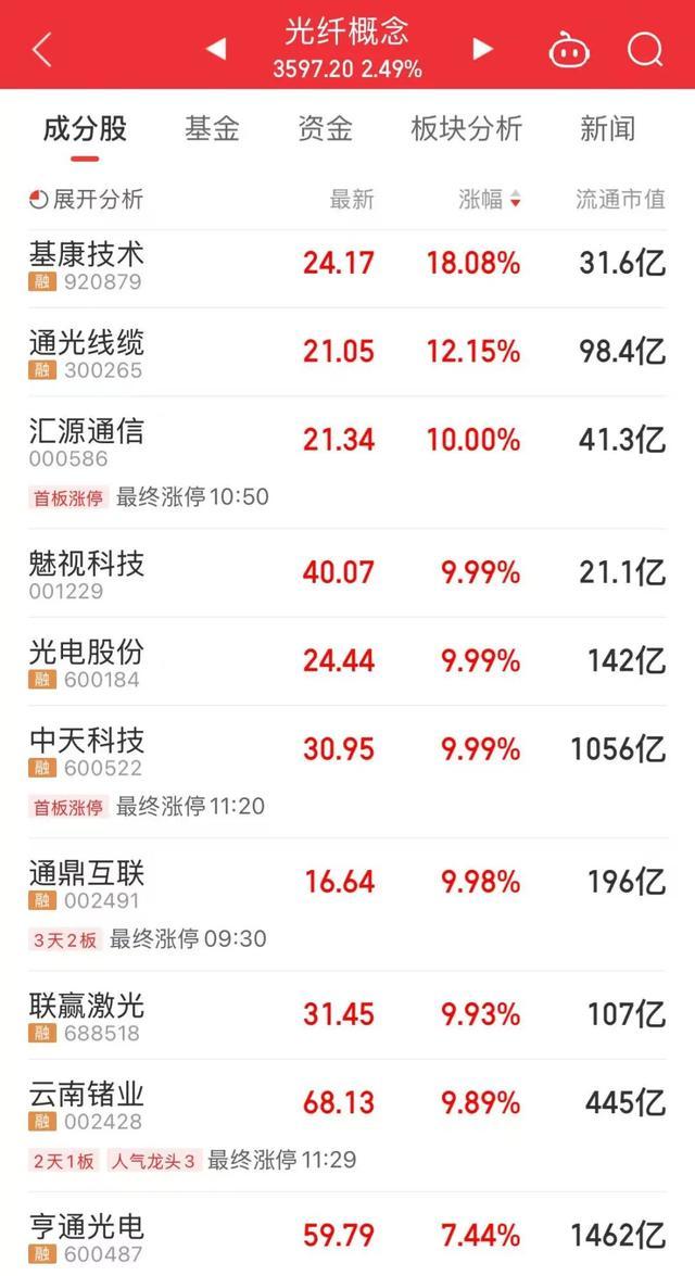 今天上午,算力产业链继续走强,光纤板块走势最强。中天科技、亨通光电、长飞光纤三大龙头股均大涨,其中,中天科技涨停。