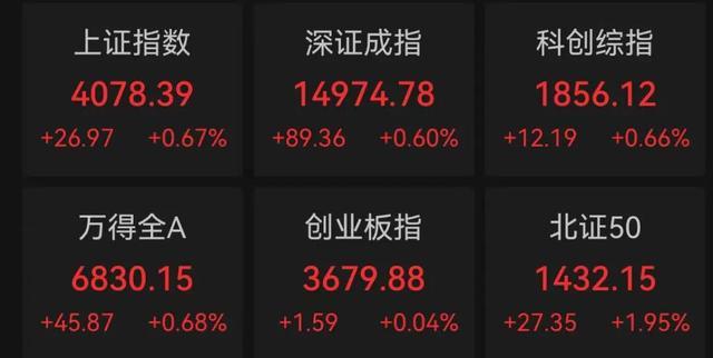 上午收盘,上证指数上涨0.67%,深证成指上涨0.6%,创业板指上涨0.04%,科创综指上涨0.66%。