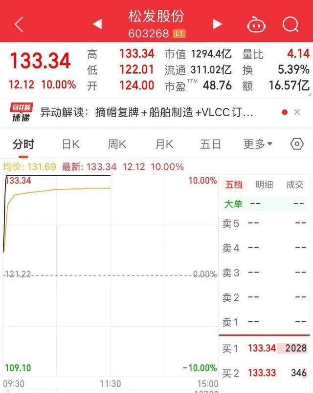 今天上午,松发股份涨停,股价创历史新高,最新市值为1294.4亿元。
